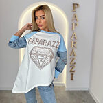 Rozmery: Asymetrická mikinka: prsia- 124cm, driek- 120cm, boky- 140cm, dĺžka- 86/61cm, rukáv- 49cm. Nohavice: pas- 80-100cm, boky- 110cm, dĺžka- 102cm.
