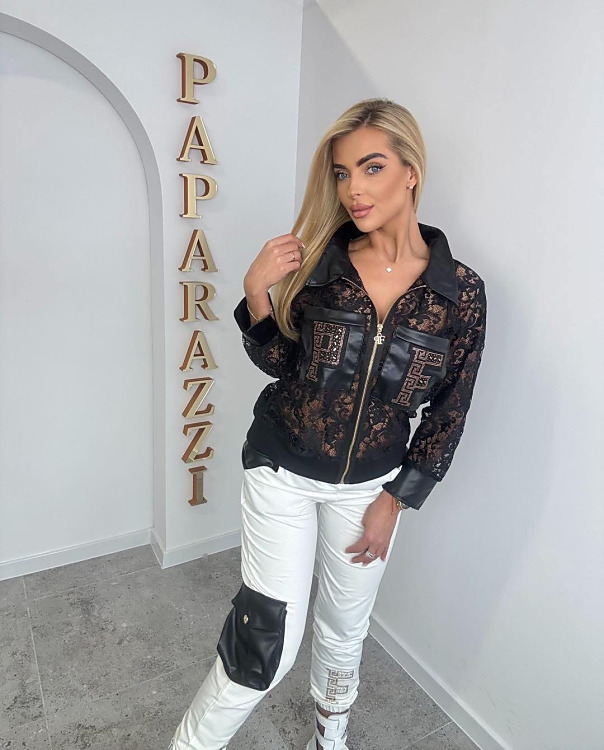 Rozmery: Krajkovaný vršok: prsia- 112cm, dĺžka- 60cm, rukáv- 50cm. Tepláky: pás- 80-100cm, boky- 110cm, dĺžka- 100cm.