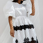 Rozmery pre veľkosť 36: prsia- 98cm, driek- 86cm, dĺžka- 95cm, rukáv- 53cm. Pre veľkosť 38: prsia- 102cm, driek- 88cm, dĺžka- 95cm, rukáv- 53cm. Pre veľkosť 40: prsia- 106cm, driek- 90cm, dĺžka- 95cm, rukáv- 53cm.