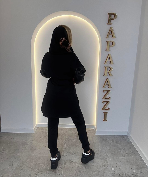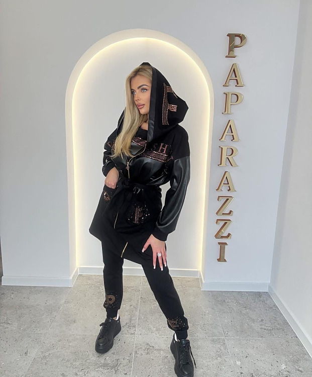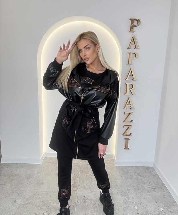 Rozmery: Mikina: prsia- 120cm, dĺžka- 65cm, rukáv- 15cm. Tepláky: pás- 80-100cm, boky- 110cm, dĺžka- 102cm. Cardigán: prsia- 120cm, boky- 120cm, dĺžka- 90cm, rukáv- 49cm.